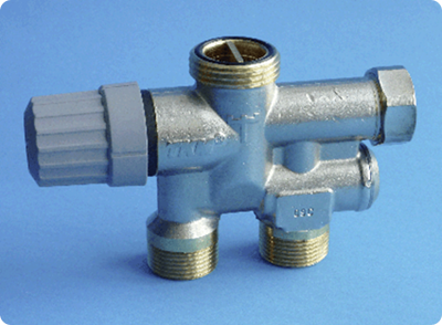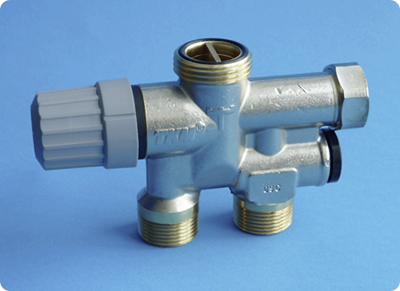Bottenkopplad ettrörsventil med anslutning mot golv. Ventilen är vändbar med termostaten till höger eller vänster. Radiatorflödet är 40 % och flödesriktningen är valbar. Ventilen är försedd med en inbyggd slingstrypventil. Ventilen känns igen på sitt svarta insexlock för inställningen av motståndstalet, Kv-tal som görs med hjälp av en inställningsmall.